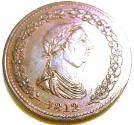 Description19th century traders token. 1 Penny. Obverse: George III bust in laurel leaves with date below. Reverse: Commerse seated on a bale of hay, inscription 'One Penny Token'On View