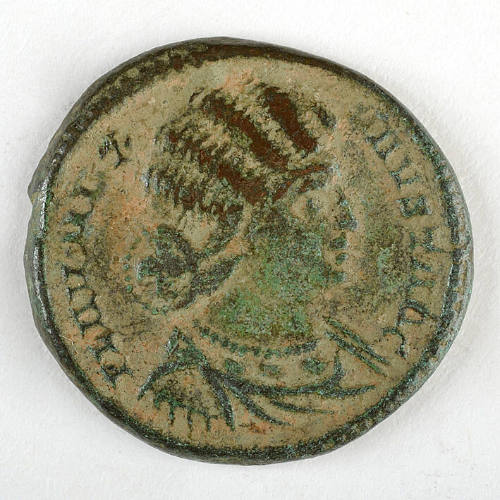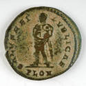 DescriptionObverse Description: bust of woman facing right, Greek letters aroundReverse Description: standing figure with Greek letters around and in exergue
